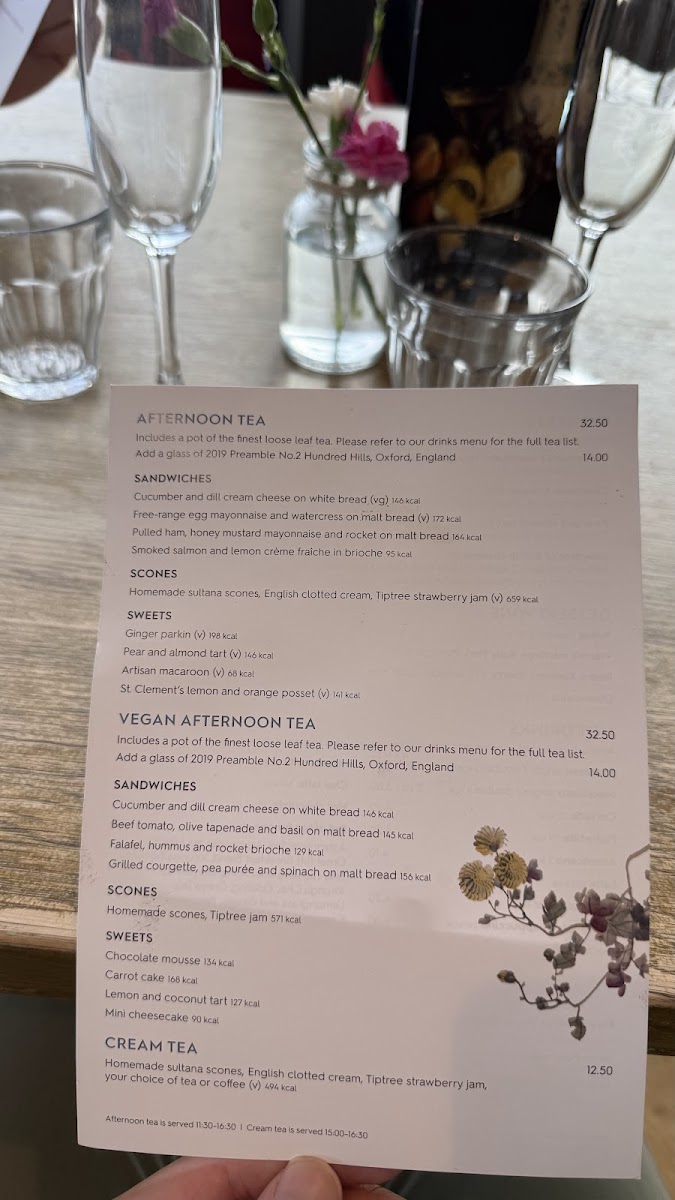 Guests can enjoy a range of comforting afternoon treats such as traditional and vegan afternoon teas featuring delicate cucumber sandwiches, scones with clotted cream, and rich terrines. For something more substantial, the menu includes carefully prepared mains like rosemary chicken with broad beans and a delicate wild-farmed black truffle & ricotta tortelloni, blending fresh, seasonal ingredients with subtle culinary twists.